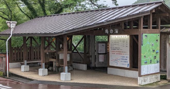 十津川温泉には日帰り温泉施設が2つあり、1つは上述の庵の湯で、もう1つは『公衆浴場 憩の湯』だ。こちらは庵の湯と比べてしまうと、景色が残念ではあるが、泉質は同等に素晴らしい。どちらかというと、観光客向けというよりも、地元客向けの素朴な施設といった感じである。時間がある温泉ファンであれば、どちらも訪問しても良いが、観光客がどちらか1つしか訪問する時間が無いのであれば、庵の湯をおすすめする。ただし、憩の湯は、入口にスロープが設けられていたり、施設内の階段には自動昇降機が設置されてあったりと、バリアフリー対処がされていた。